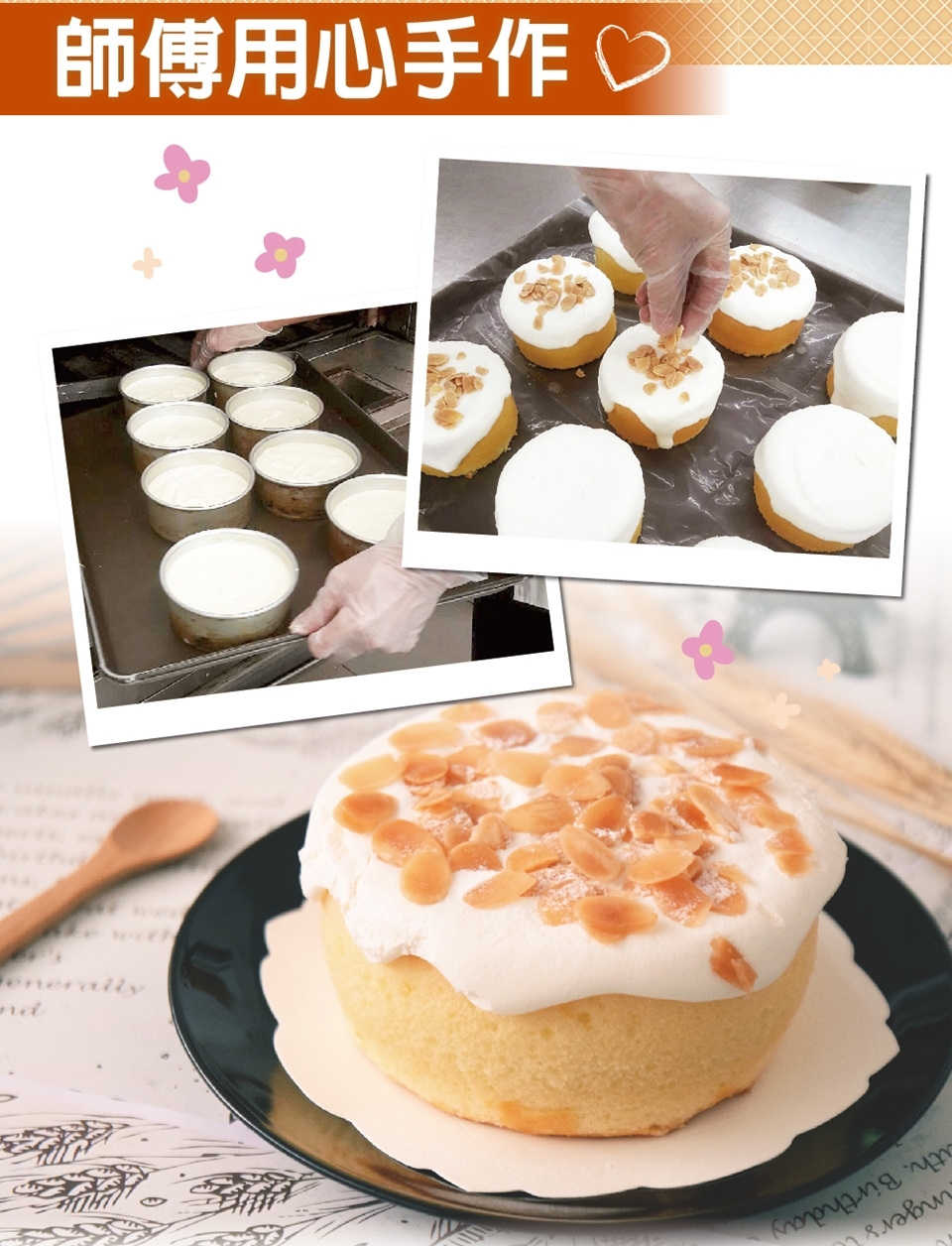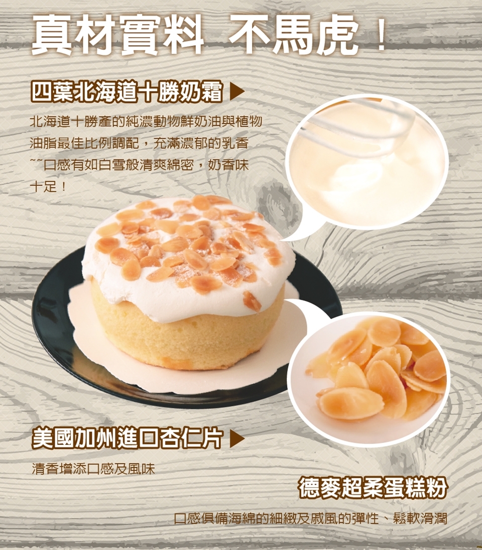 商品規格 品牌 : 品屋 類別 : 蛋糕 蛋糕種類 : 奶油蛋糕 蛋糕型態 : 造型蛋糕/生日蛋糕/母親節蛋糕/父親節蛋糕 口味 : 牛奶, 原味 保存方式 : 冷凍-18℃以下 保存期限 : 含出貨日冷凍7天 出貨天數 : 6-7個工作天內 規格/尺寸 : 120g±5%/顆 內容物成分 : 蛋、超柔蛋糕粉、鮮奶油、北海道十勝奶霜、沙拉油、杏仁片、乳酪、達文西起士蛋糕風味淋醬、防潮糖粉、海鹽 廠商名稱 : 台灣訊息股份有限公司 廠商地址 : 台北市忠孝東路四段218-1號8樓 食品業者登錄字號 : 台灣訊息A-113185445-00000-9 投保產品責任險字號 : 0500 字第 03ML000290 號保單續保 體驗說明 使用方法說明 無 注意事項 注意事項 ※本商品性質具備消保法第十九條所定之合理例外情事「保存期限較短商品」,購買後不得於七日內不附理由解除契約,請理解後再行購買。 ※生鮮商品無七天鑑賞期 ※因製作/包裝過程繁複,實品規格可能會有些許誤差 ※為保持產品最佳風味,請盡速食用完畢 ※ 產品顏色可能會因網頁呈現與拍攝關係產生色差,圖片僅供參考,商品依實際供貨樣式為準。 ※ 商品如經拆封、使用、或拆解以致缺乏完整性及失去再販售價值時,將影響退換貨權益。 ※ 產品文案為原廠(供應商)所提供,若有變動敬請參照實際商品為準。 ※ 商品不包含其他裝飾物,實際內容物,請詳閱「商品規格」。 ※ 若商品有非人為瑕疵狀況,請拍照記錄,並於到貨後24小時內以電話或e-mail通知,客服人員將會協助處理。