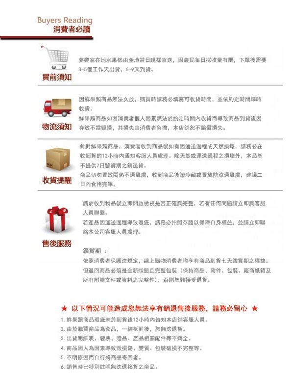 1.收到貨後請先檢查商品是否到貨瑕疵,逾 10天恕不接受退換貨;